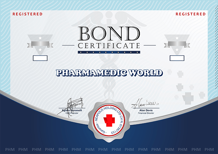 Pharmamedic  Ltd, a company registered in the United Kingdom with number 07696394, undertakes to pay the Investor the full amount of the bond, plus interest due on the unpaid principal at the rate of 12% per annum. Interest will be credited to the beneficiary’s Pharmamedic Digital Wallet which corresponds to the above registration code and can be used or withdrawn in real time. Interest will be paid monthly from the date of issue, totalling 1% per month for 12 months, and the first payment will be due after exactly 30 days. Neapolis Holding Ltd is the holding of group and is a Garantor of Invested Capital.
